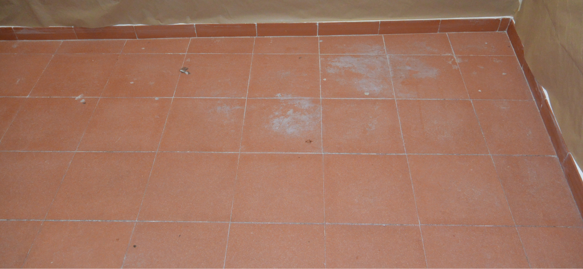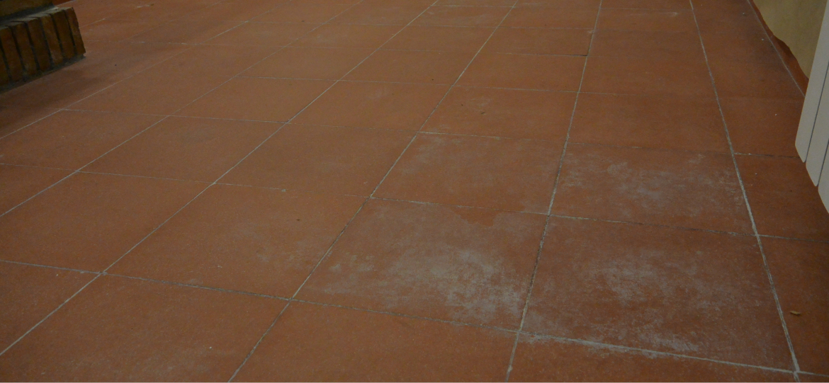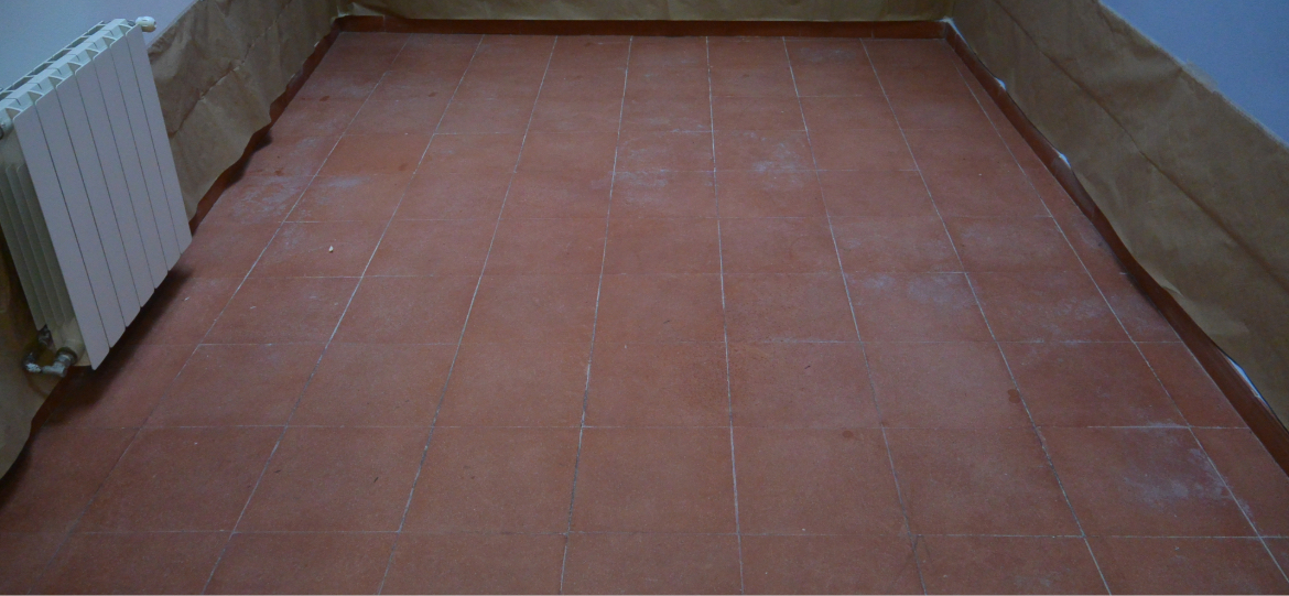 El pavimento mostraba manchas de humedad y salitre, además de acumulación de grasa, especialmente en la zona de cocina, lo que afectaba tanto a la estética como a la uniformidad del acabado.