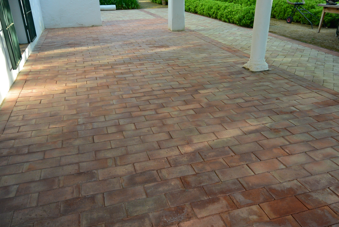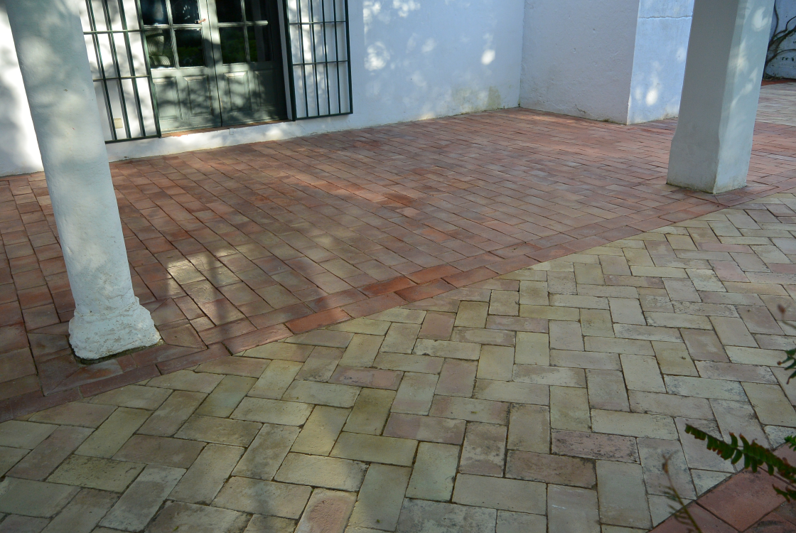 Como tratamiento protector, se aplicó Terracotta Impregnator, un producto que actúa como hidrófugo y antimanchas, ayudando a prevenir la reaparición del verdín, reduciendo la absorción de humedad y facilitando la limpieza cotidiana del suelo. Este tratamiento respeta la porosidad del barro y mantiene su transpiración natural.