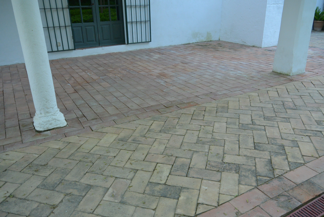Este proyecto se realizó en un cortijo situado a las afueras de Sevilla, sobre un suelo de barro en exterior que presentaba manchas de humedad, zonas con salitre y aparición de verdín, provocadas por la exposición continua a la lluvia y al sol. Este tipo de patologías son habituales en suelos porosos de exterior, donde la humedad y los agentes atmosféricos penetran con facilidad si el pavimento no cuenta con una protección adecuada.