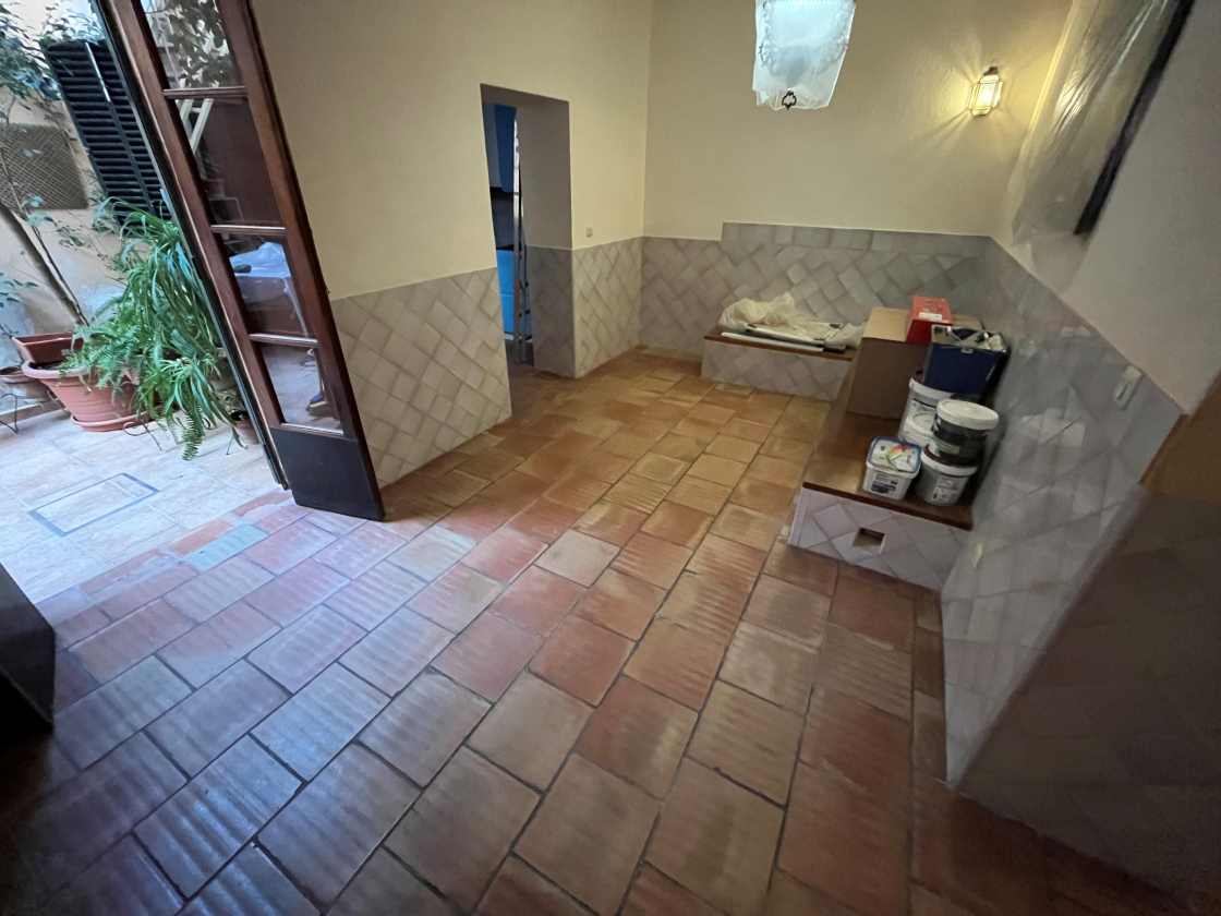 Este trabajo se realizó en una vivienda en Sevilla, sobre un suelo de barro en interior. El propietario decidió reformar la vivienda y, dentro del proceso, quiso renovar el aspecto de su suelo de barro, que con el paso del tiempo presentaba una patina superficial causada por el uso continuado de productos de limpieza no adecuados. Además, en la zona de la cocina se apreciaban manchas de grasa, lo que afectaba tanto a la estética como a la textura natural del pavimento. El objetivo principal del cliente era recuperar un aspecto más suave, natural y auténtico del barro.