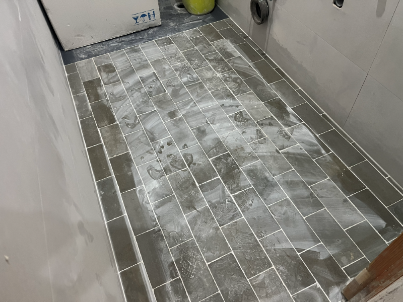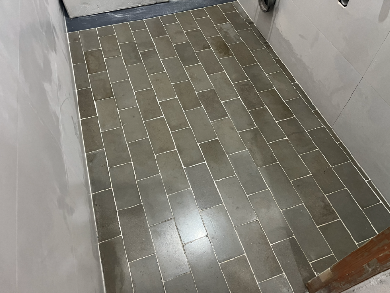 A continuación, se realizó una limpieza profesional en profundidad con Deep Degreaser, eliminando residuos de obra, restos cementosos y suciedad incrustada acumulada en el poro del suelo. Una vez limpio, se volvió a trabajar sobre la textura del pavimento, asegurando una superficie homogénea y preparada para el tratamiento final.