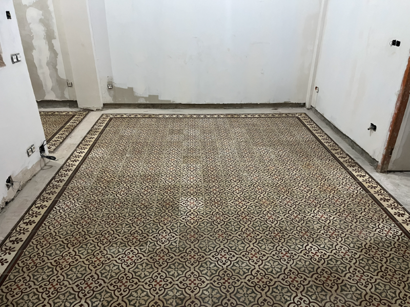 El resultado final es un suelo hidráulico restaurado, limpio, con el color recuperado y protegido, perfectamente integrado en la reforma del edificio y preparado para un uso prolongado respetando su valor patrimonial.