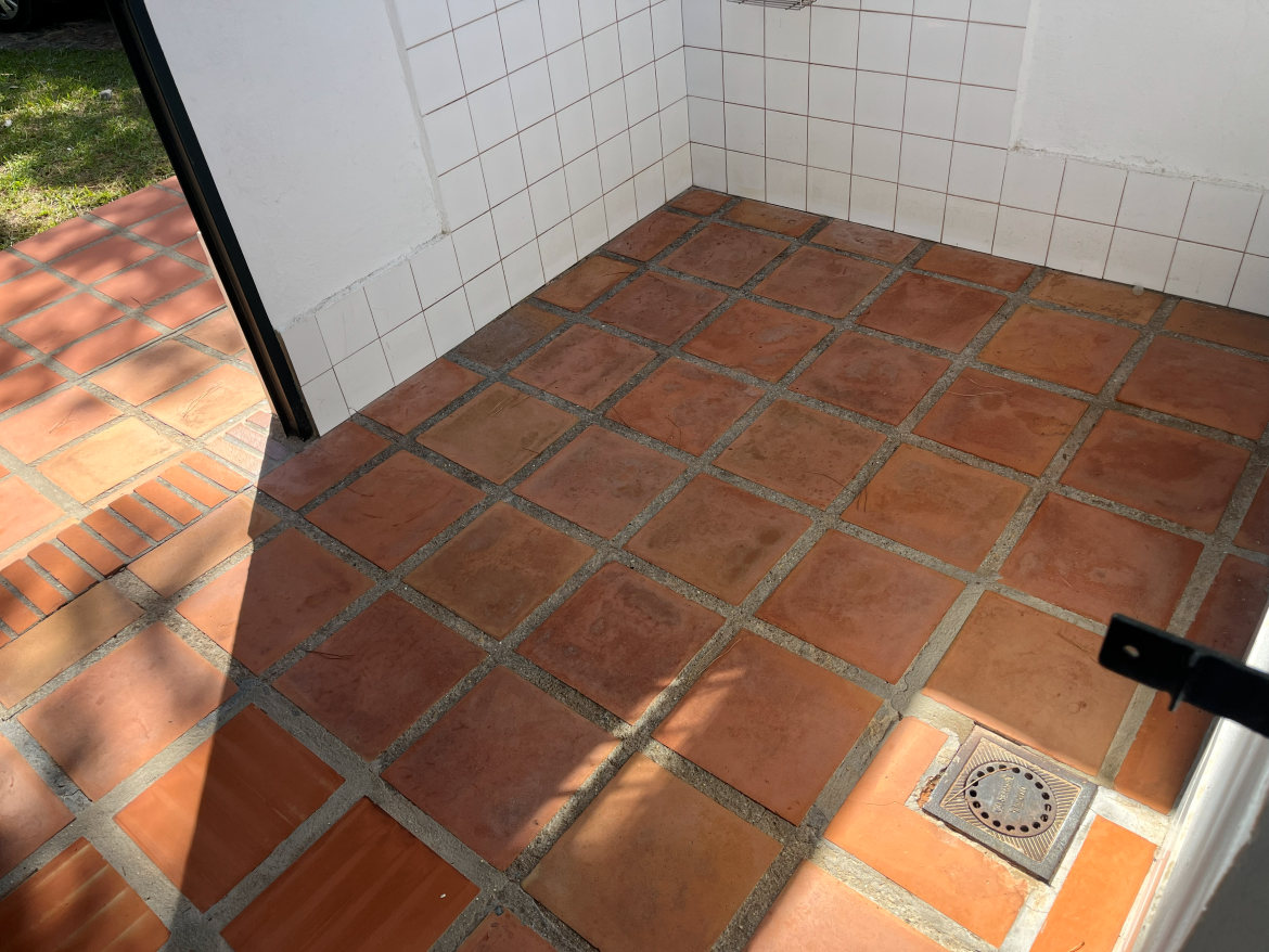 Una vez retirado el tratamiento antiguo, se profundizó aun mas la limpieza con Cement Remover, eliminando residuos calcáreos y restos minerales presentes en el poro del barro. Posteriormente, se realizó la limpieza de preparación con Floor Cleaner, dejando el suelo en condiciones óptimas para recibir el nuevo tratamiento.