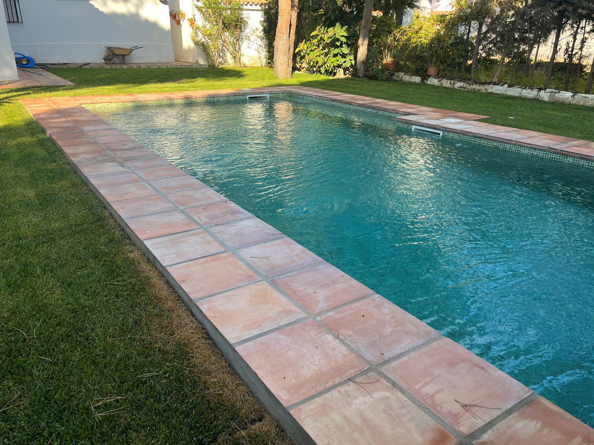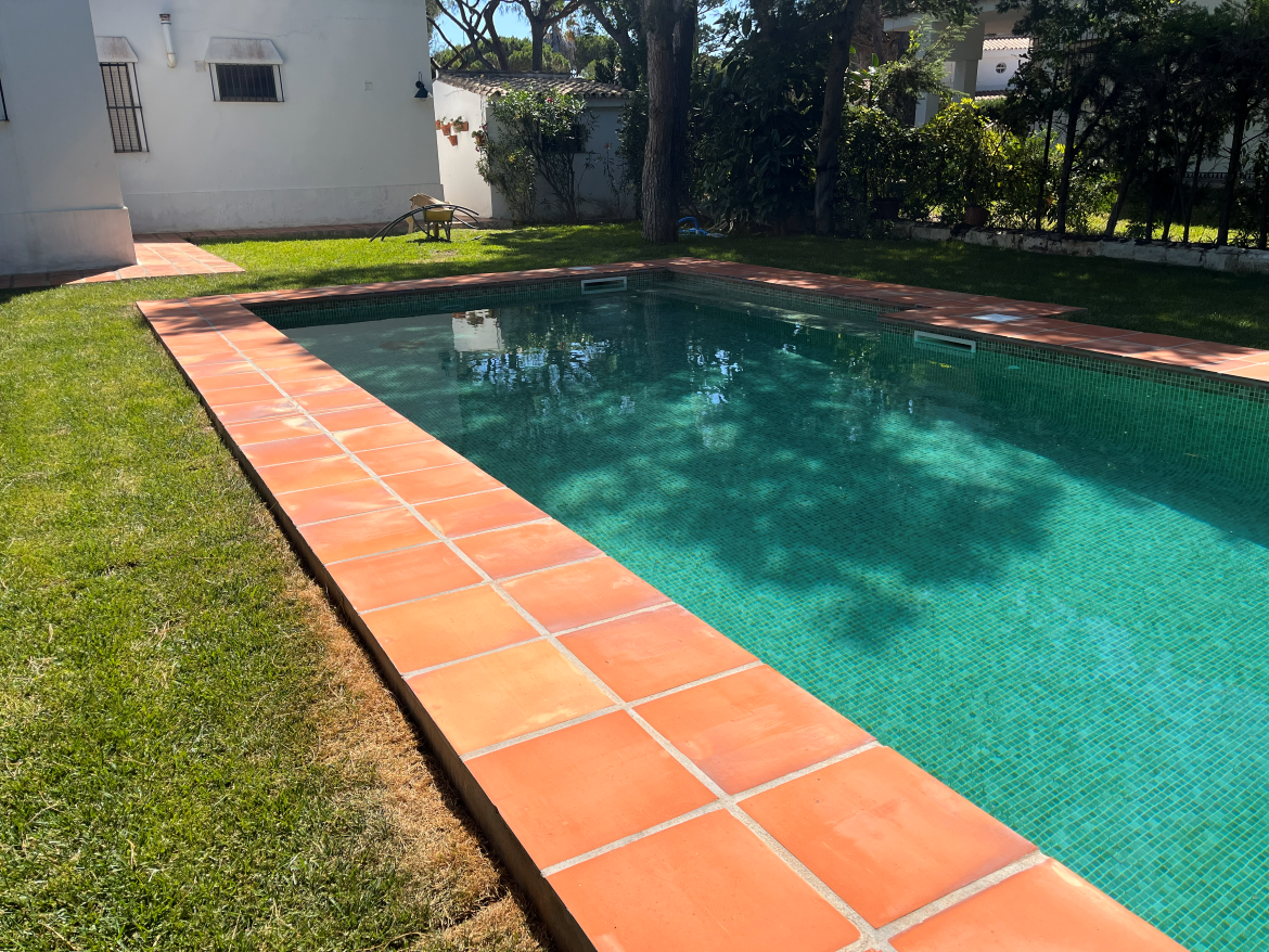 Restauración y tratamiento de suelo de barro en interior y exterior en Urb. Roche - Cádiz.